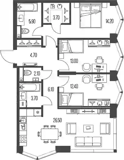 44 046 900 ₽4-к.квартира, 89.8 м², 24 эт.