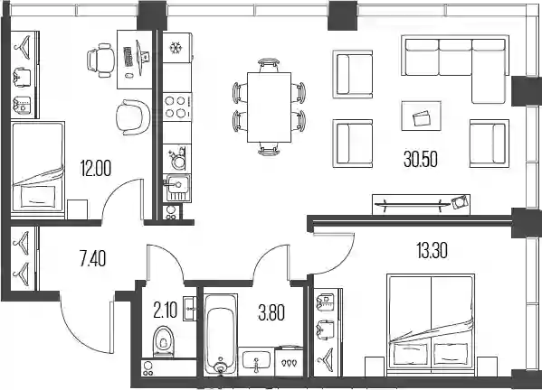 34 110 153 ₽3-к.квартира, 69.4 м², 30 эт.