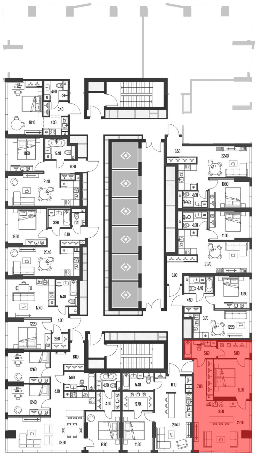 «Северный порт» современный многофункциональный комплекс с коммерческой и социальной инфраструктурой. Проект строится в 3 очереди. Первая очередь включает в себя 3 монолитных жилых корпуса переменной этажности высотой от 19 до 58 этажей. В домах установлены скоростные пассажирские и грузовые лифты. В местах общего пользования выполнена дизайнерская отделка, в корпусе 7.3 расположен парадный холл с декоративным освещением, лаунж-зоной, детской игровой комнатой и колясочной.