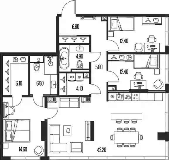 4-к.квартира, 116.8 м², 43 эт. в ЖК Северный Порт Корпус 7.3