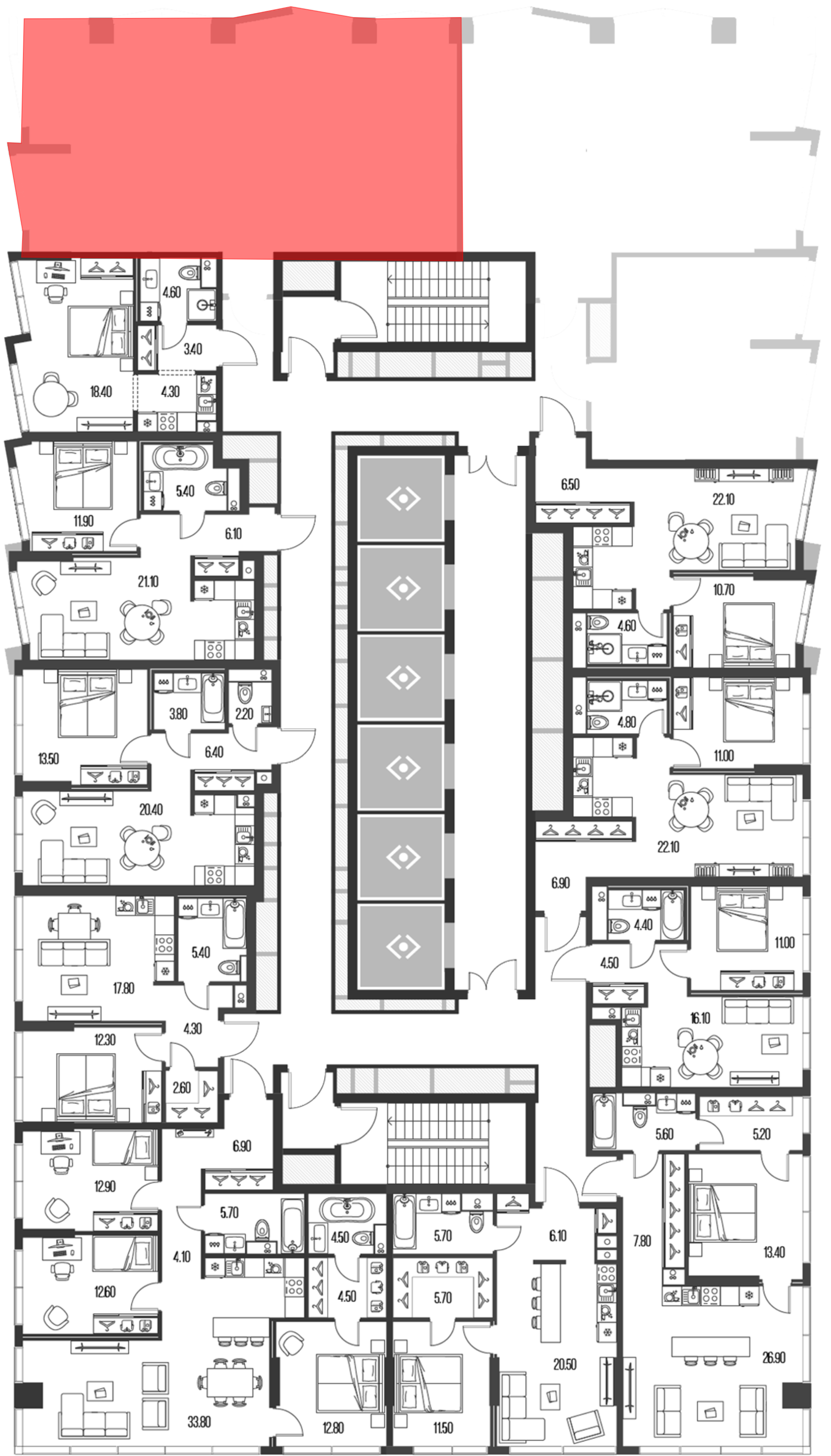 «Северный порт» современный многофункциональный комплекс с коммерческой и социальной инфраструктурой. Проект строится в 3 очереди. Первая очередь включает в себя 3 монолитных жилых корпуса переменной этажности высотой от 19 до 58 этажей. В домах установлены скоростные пассажирские и грузовые лифты. В местах общего пользования выполнена дизайнерская отделка, в корпусе 7.3 расположен парадный холл с декоративным освещением, лаунж-зоной, детской игровой комнатой и колясочной.