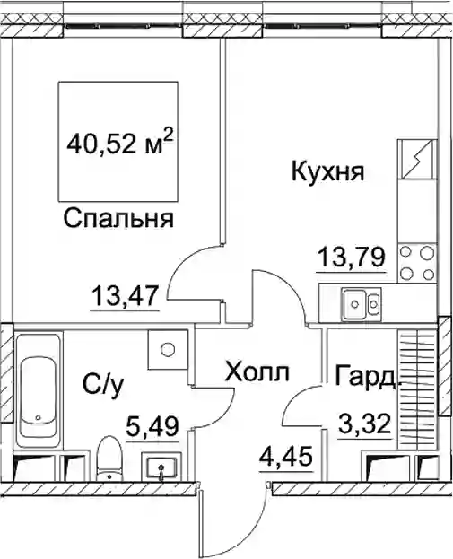 23 698 350 ₽1-к.квартира, 40.51 м², 14 эт.