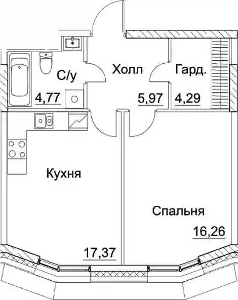 25 599 620 ₽1-к.квартира, 44.29 м², 21 эт.
