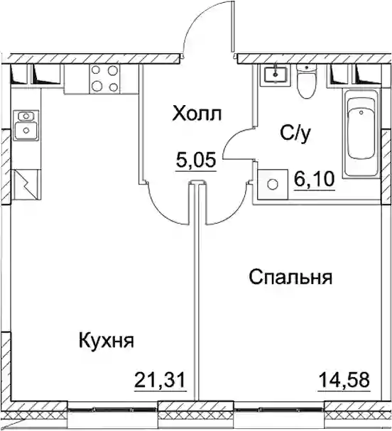 25 260 300 ₽1-к.квартира, 43.18 м², 9 эт.