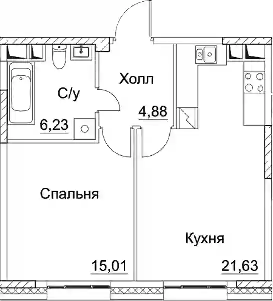 22 764 650 ₽2-к.квартира, 41.77 м², 2 эт.