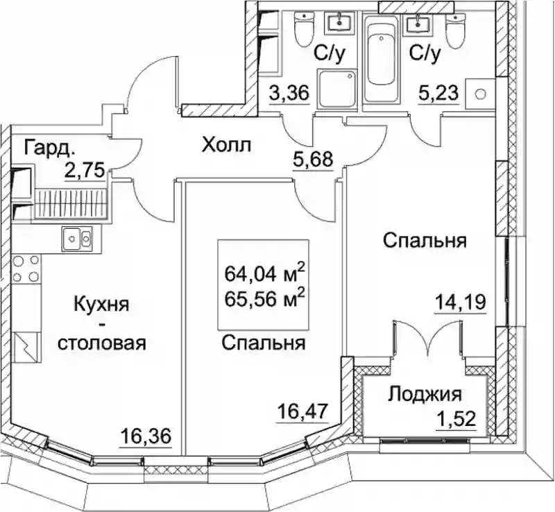 64.04 м2