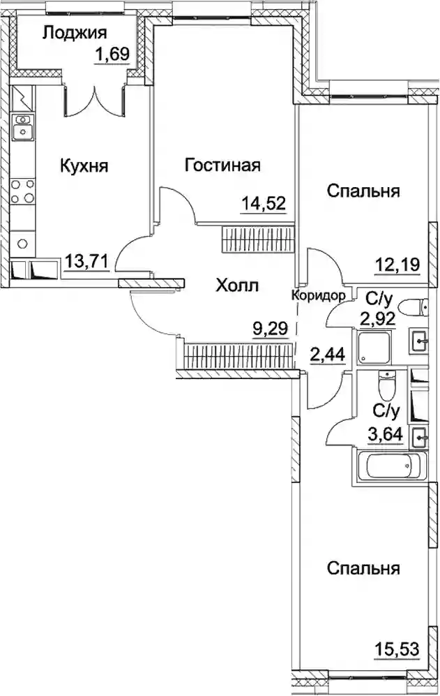 40 447 680 ₽3-к.квартира, 74.08 м², 19 эт.