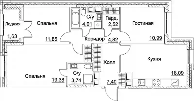 40 724 180 ₽3-к.квартира, 84.49 м², 11 эт.