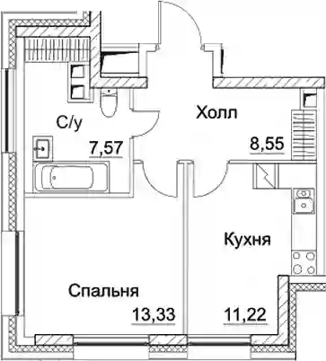 22 351 300 ₽1-к.квартира, 44.26 м², 2 эт.