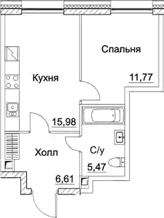 22 764 650 ₽2-к.квартира, 41.77 м², 2 эт.