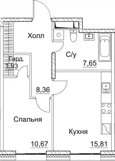 22 351 300 ₽1-к.квартира, 44.26 м², 2 эт.