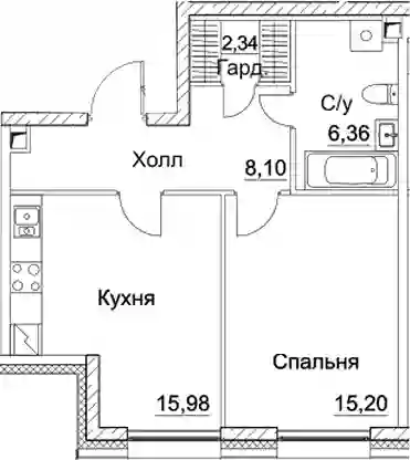 27 215 300 ₽1-к.квартира, 45.74 м², 15 эт.