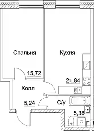 26 104 200 ₽1-к.квартира, 46.95 м², 8 эт.