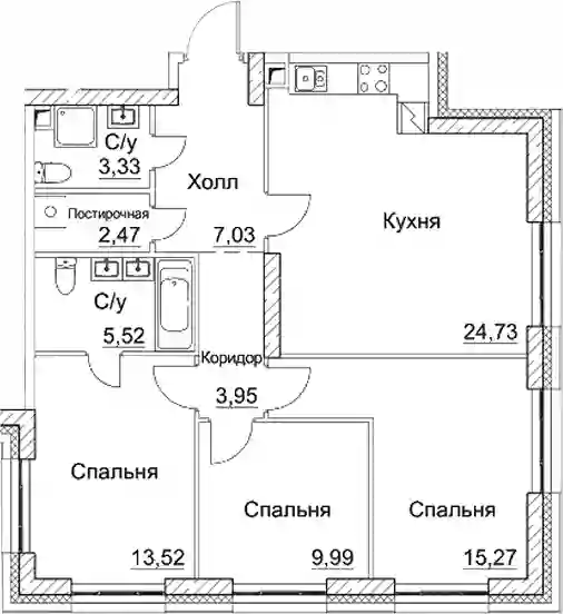 44 990 100 ₽3-к.квартира, 77.24 м², 12 эт.