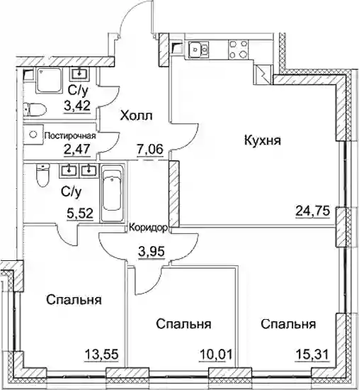 39 588 920 ₽3-к.квартира, 83.17 м², 4 эт.