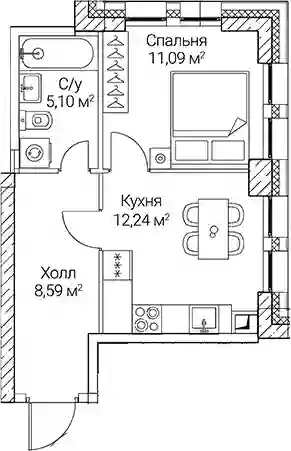 25 306 250 ₽1-к.квартира, 40.49 м², 24 эт.