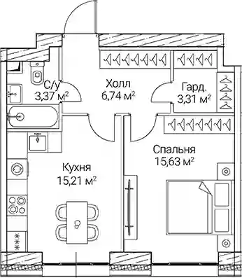 1-к.квартира, 44.26 м², 2 эт. в ЖК SEZAR CITY Корпус 3