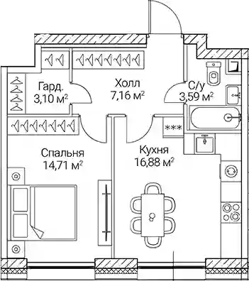 25 376 010 ₽1-к.квартира, 43.23 м², 19 эт.