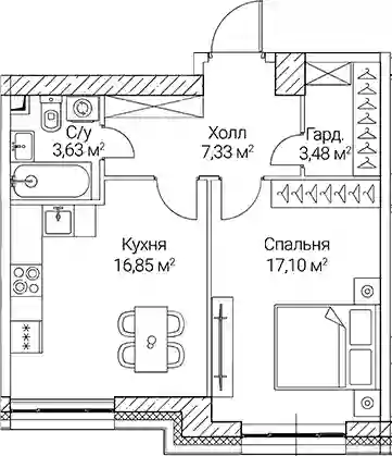 28 162 980 ₽1-к.квартира, 48.39 м², 24 эт.
