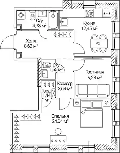 38 802 100 ₽3-к.квартира, 62.04 м², 14 эт.