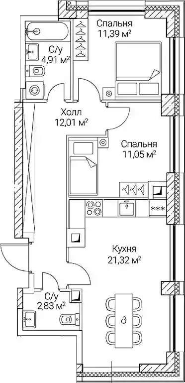 3-к.квартира, 63.51 м², 48 эт. в ЖК SEZAR CITY Корпус 3