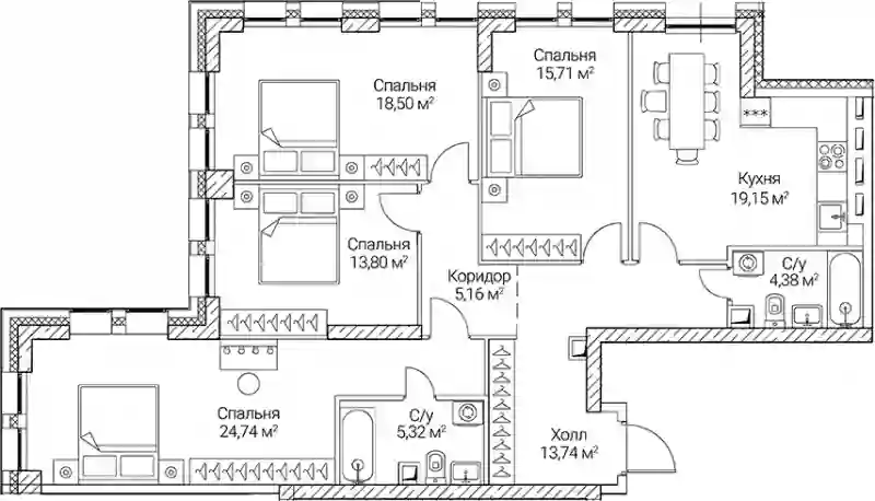 70 086 088 ₽4-к.квартира, 112.22 м², 17 эт.