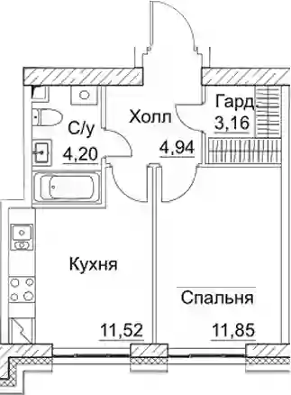 24 377 760 ₽1-к.квартира, 41.04 м², 20 эт.