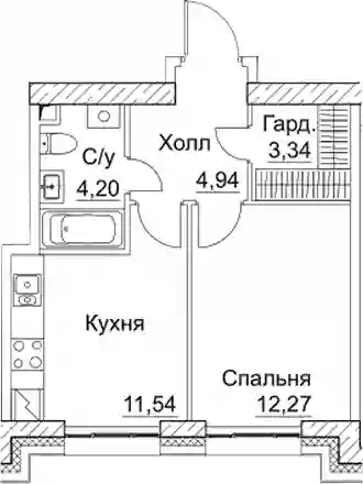 22 850 600 ₽1-к.квартира, 37.46 м², 27 эт.
