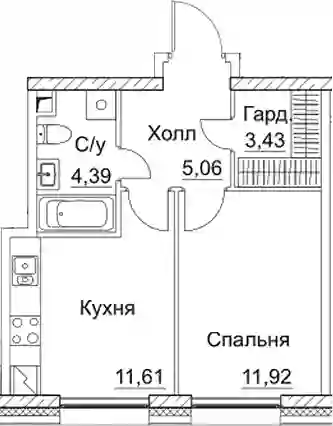 24 360 150 ₽1-к.квартира, 39.61 м², 45 эт.