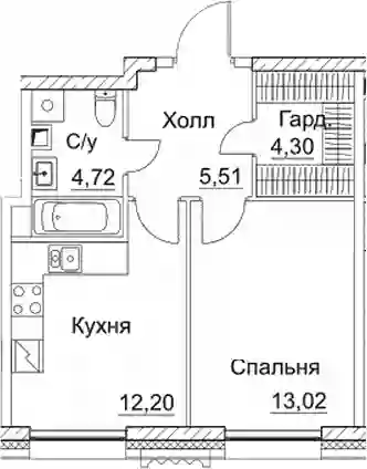 27 610 538 ₽1-к.квартира, 43.5 м², 2 эт.