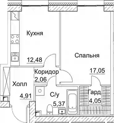 1-к.квартира, 45.92 м², 4 эт. в ЖК SEZAR CITY Корпус 4
