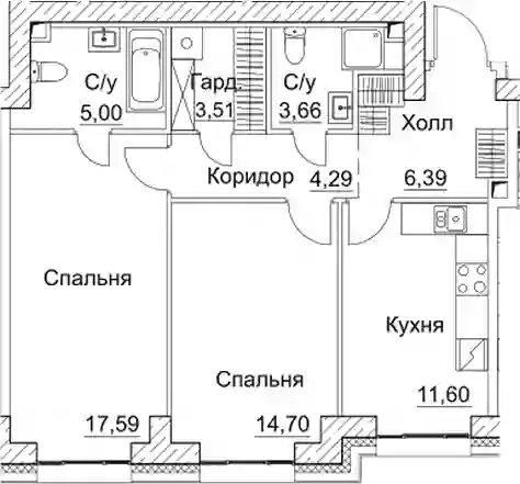 2-к.квартира, 66.74 м², 3 эт. в ЖК SEZAR CITY Корпус 4