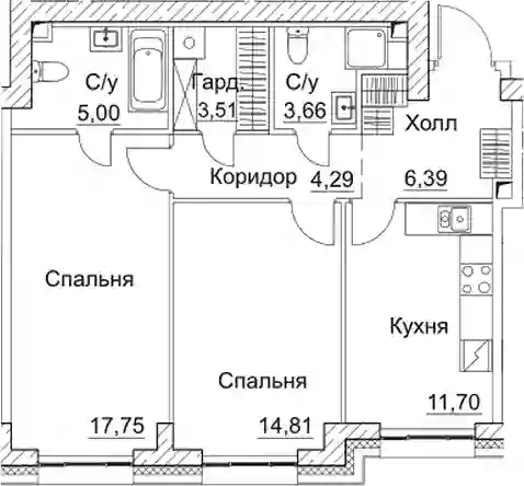 34 335 050 ₽3-к.квартира, 66.67 м², 6 эт.