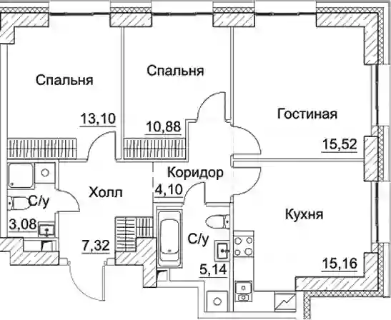 3-к.квартира, 74.3 м², 3 эт. в ЖК SEZAR CITY Корпус 4