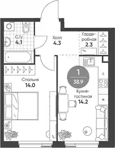 24 100 253 ₽2-к.квартира, 39.3 м², 42 эт.