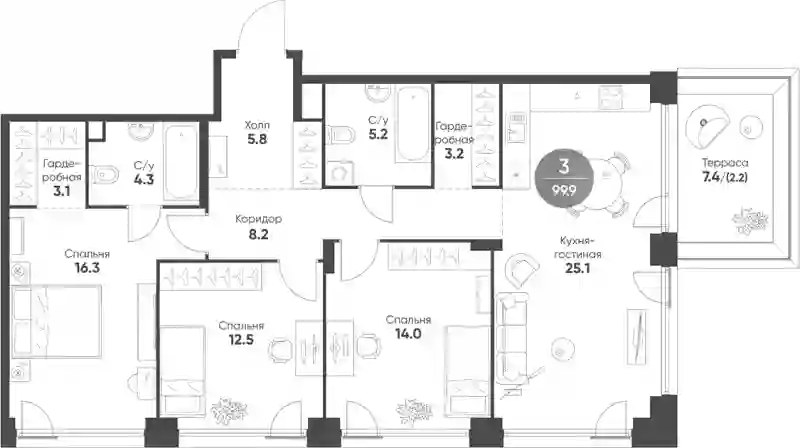4-к.квартира, 97.7 м², 7 эт. в ЖК Shagal Корпус 1 Этап 3