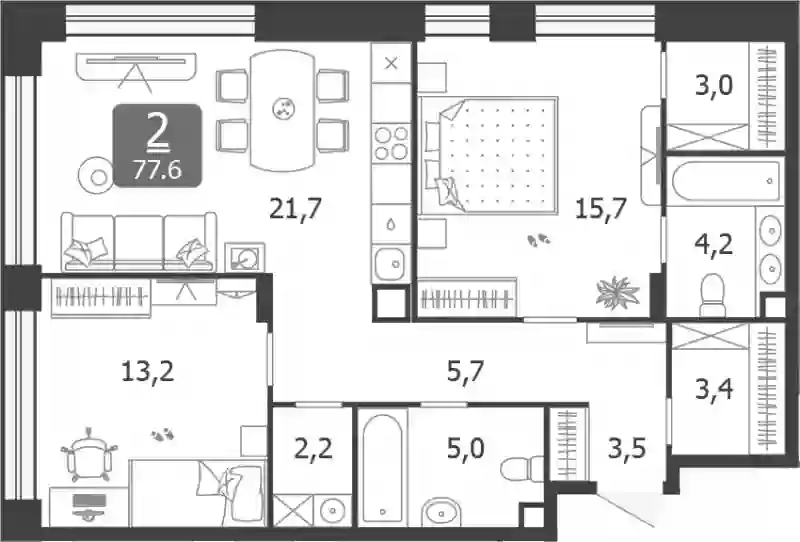 3-к.квартира, 77.6 м², 2 эт. в ЖК Shagal Корпус 1 Этап 4