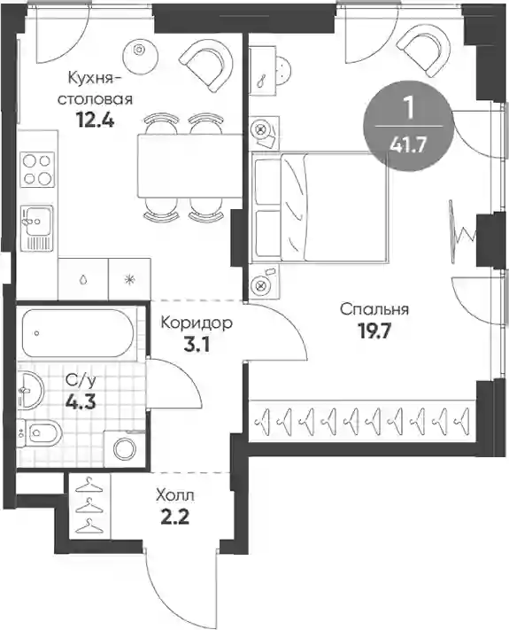 26 982 284 ₽1-к.квартира, 41.7 м², 5 эт.