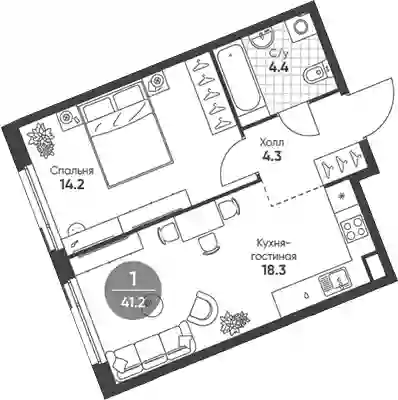 26 753 087 ₽2-к.квартира, 41.2 м², 6 эт.
