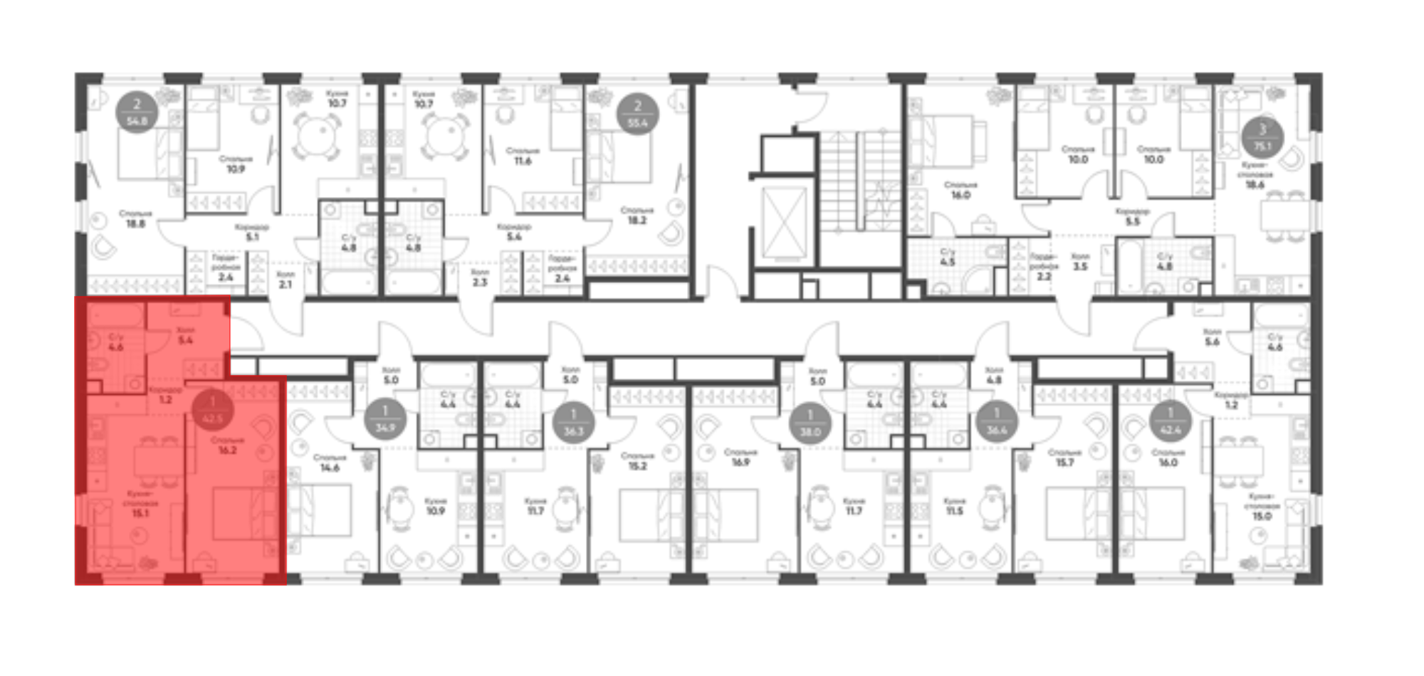 2-к.квартира, 42.5 м², 2 эт. в ЖК Shagal Корпус 3 этап 2