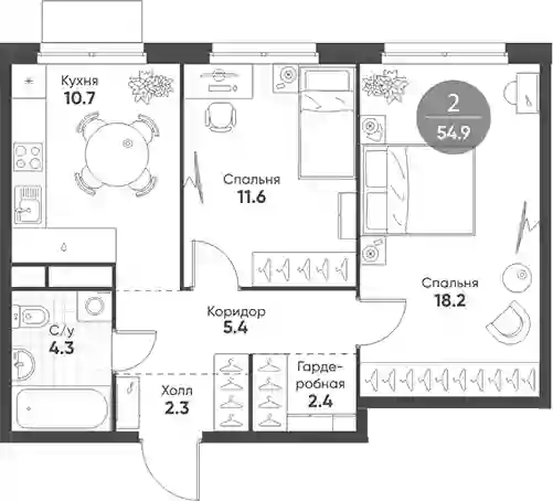 В проекте представлены квартиры с 1–4 спальнями в формате европланировок с панорамными окнами и потолками до 3,5 метров. Помещения идут без стен, что позволяет владельцам организовать пространство по собственному вкусу. Также доступны варианты с полной отделкой, включая дизайн-проект под ключ с мягкой мебелью или с кухней и встроенной бытовой техникой.