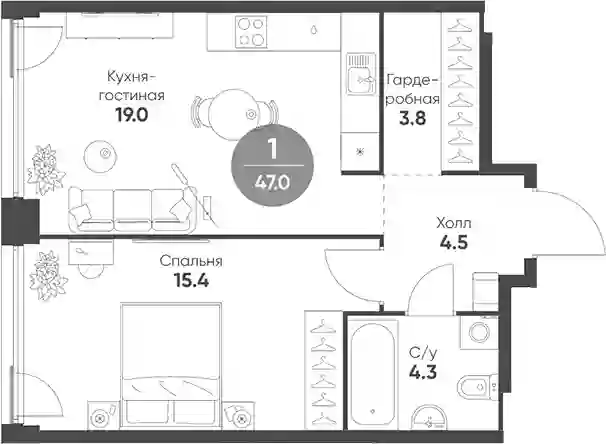 30 102 933 ₽2-к.квартира, 48.2 м², 19 эт.