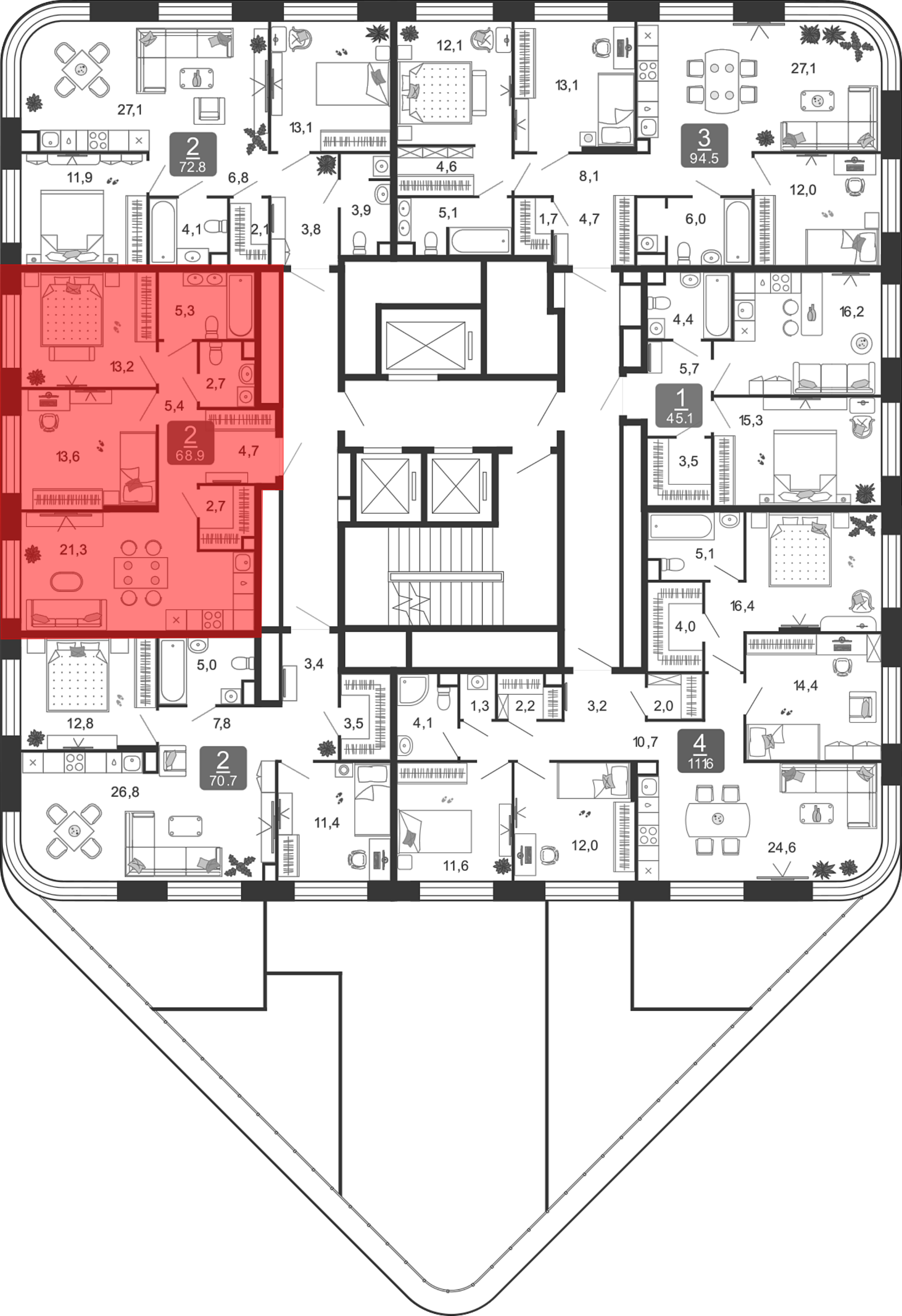 42 667 965 ₽3-к.квартира, 68.9 м², 12 эт.