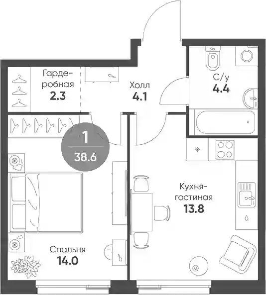 22 610 618 ₽2-к.квартира, 39.7 м², 39 эт.