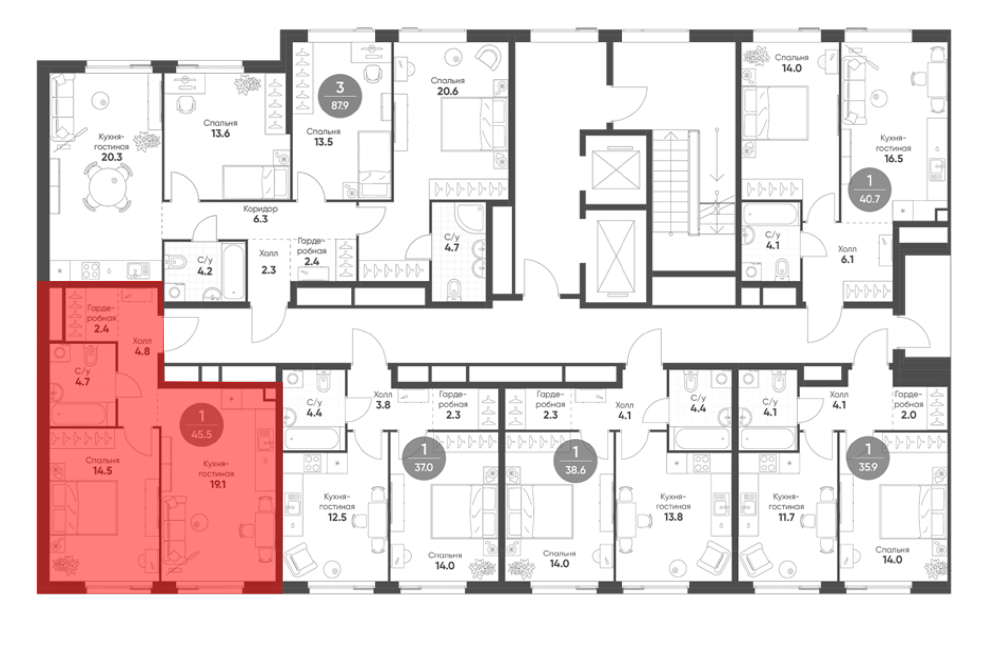 24 959 796 ₽1-к.квартира, 41 м², 7 эт.