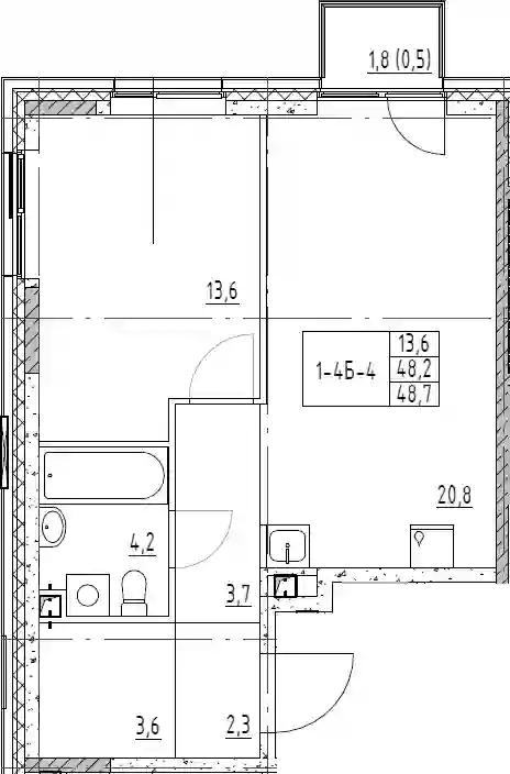 23 777 577 ₽2-к.квартира, 48.4 м², 14 эт.