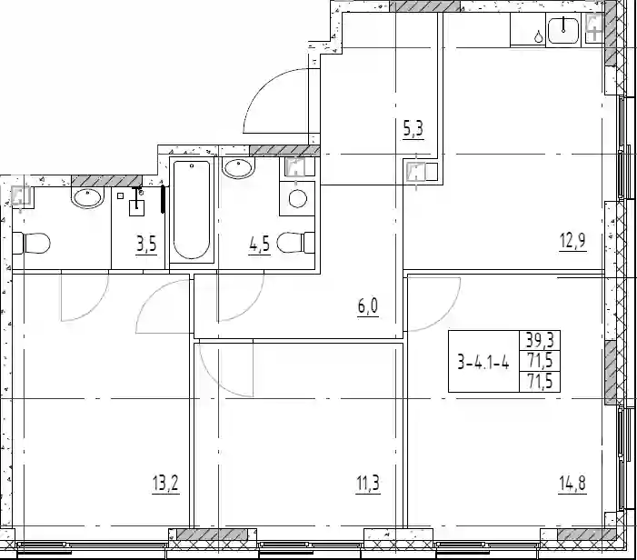 34 636 344 ₽3-к.квартира, 71.5 м², 14 эт.