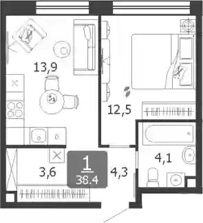 24 545 160 ₽1-к.квартира, 38.4 м², 2 эт.