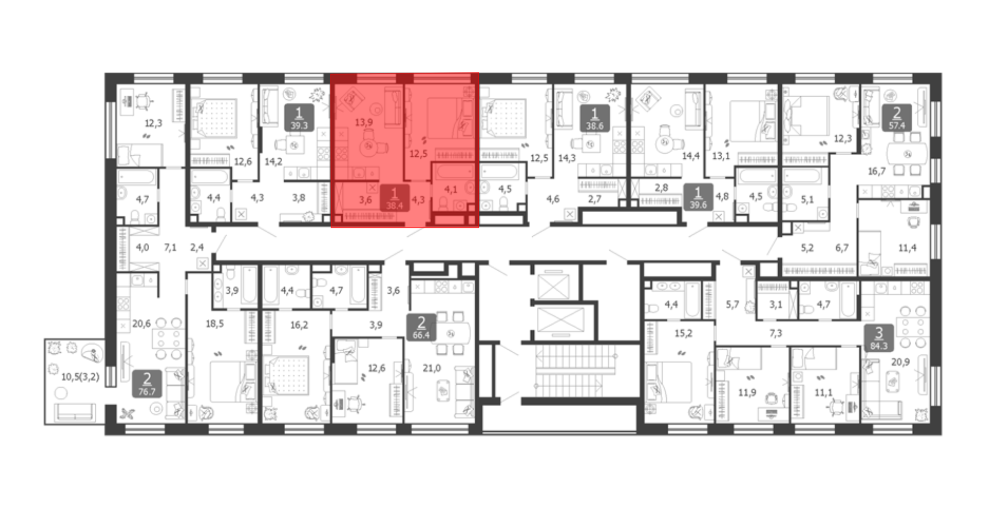 22 126 183 ₽2-к.квартира, 39.6 м², 22 эт.