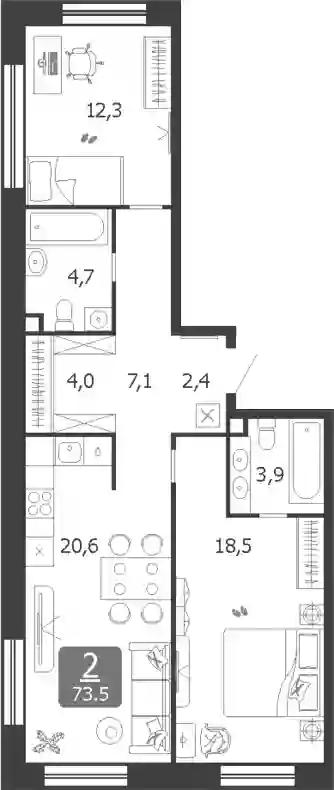 В комплексе представлен широкий выбор планировок квартир с 1–4 спальнями площадью от 40 до 150 кв. метров. Квартиры сдаются без отделки, с высотой потолков от 3 метров, окна — панорамные и увеличенные. В проекте также представлены редкие форматы квартир: пентхаусы с террасами, квартиры с отдельными постирочными, угловым остеклением и несколькими окнами.